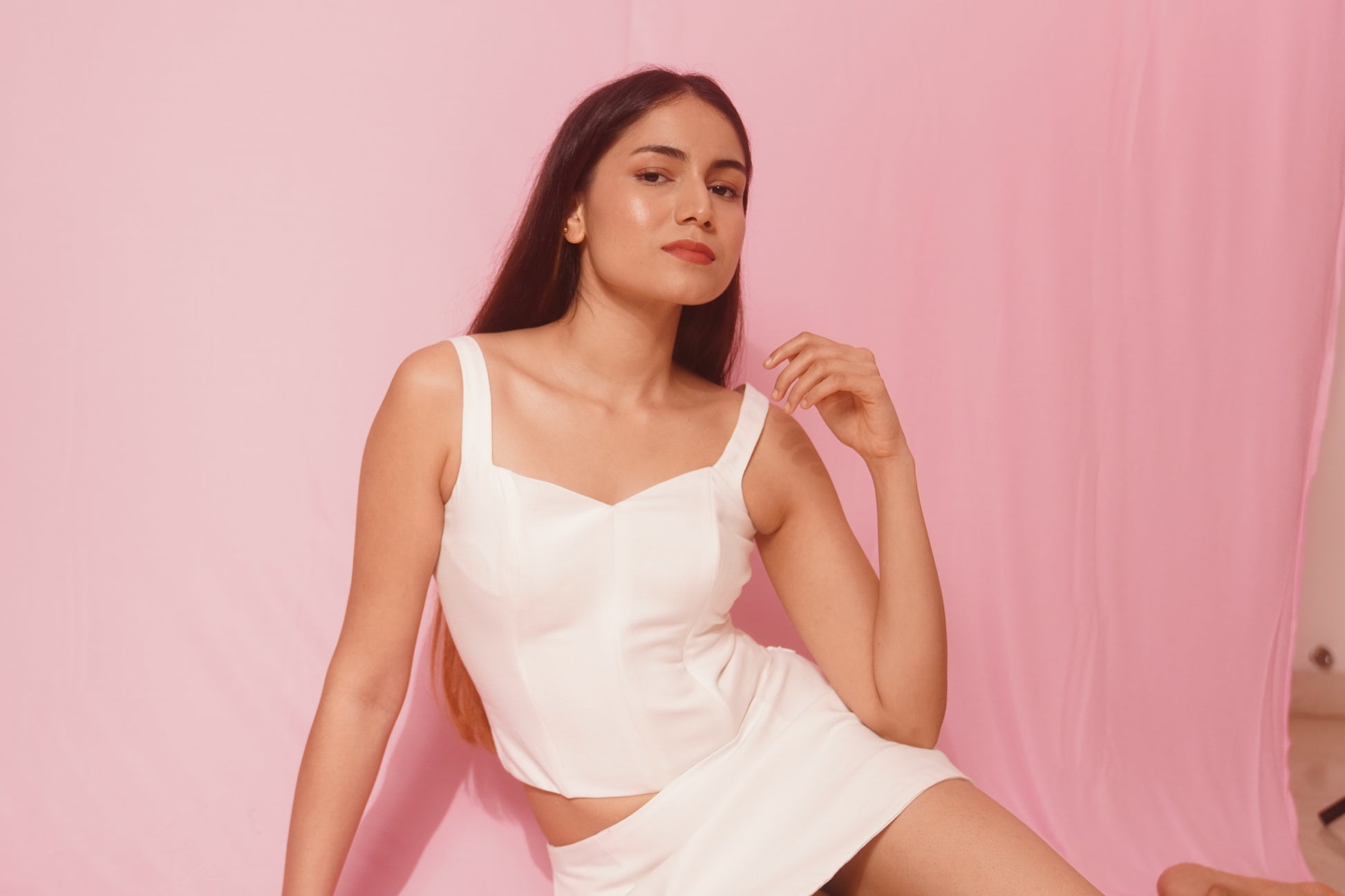 A classic off-white skirt made out of cotton-linen designed with a subtle slit and finished with a sleek concealed side zipper.
